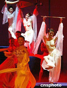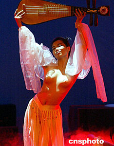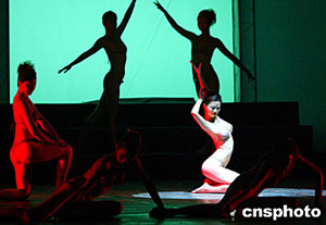 歷經(jīng)風(fēng)風(fēng)雨雨的首屆中國(guó)“人體藝術(shù)模特大賽”五月三日晚在重慶市郊一家小劇院“悄悄地”舉行,十五名經(jīng)過預(yù)賽和培訓(xùn)的男女模特參加歷時(shí)倆個(gè)小時(shí)的比賽,女模特用不全裸的“中國(guó)方式”表演中國(guó)舞蹈“飛天”,盡情展示人體之美。中新社記者:任晨鳴