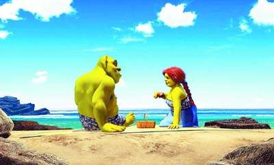 在《史萊克2》中,史萊克、菲歐娜公主和那頭喋喋不休、善于犧牲色相的驢子又一次踏上冒險之旅。而這一次,史萊克面對的不是噴火的巨龍和邪惡的法夸大人,他現(xiàn)在所面臨的最大挑戰(zhàn)和《拜見岳父母》中的本·斯蒂勒一樣,那就是獲得岳父、岳母的認(rèn)可。