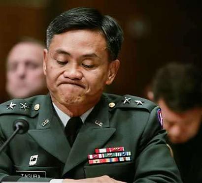 這是塔古巴少將就虐俘事件的調查首次公開作證。一同作證的還有美軍中央軍區(qū)副司令史密斯中將和國防部副部長坎伯恩。(春風)