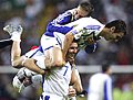 荷蘭隊(duì)球員歡抱著一團(tuán)