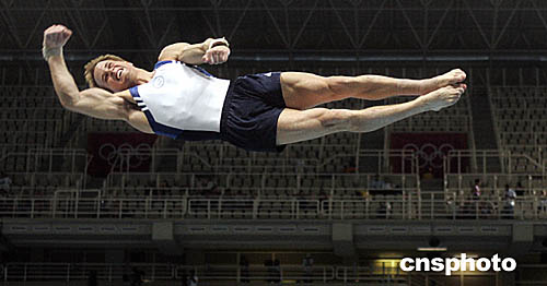 在當?shù)貢r間8月19日舉行的男子體操個人全能賽中,美國選手哈姆獲得冠軍。