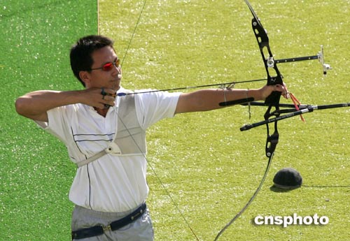 中新社雅典八月二十一日電 中國臺(tái)北選手在剛剛結(jié)束的奧運(yùn)會(huì)男子射箭團(tuán)體決賽中以二百四十五比二百五十一負(fù)于韓國隊(duì),獲得銀牌。
