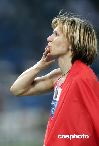 當(dāng)?shù)貢r間八月二十一日晚,在雅典奧運女子百米飛人大戰(zhàn)中,白俄羅斯選手內(nèi)斯特倫科以十秒九四的成績奪得冠軍。中新社記者:毛建軍