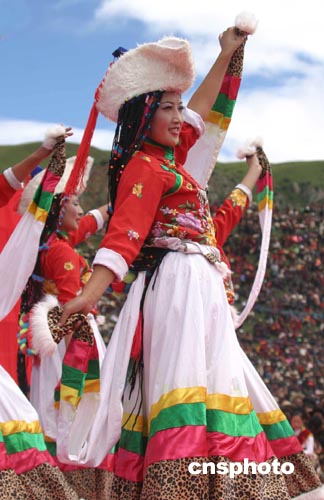 身披價值上百萬飾品的專業(yè)藏族服飾表演隊引來全場喝彩。