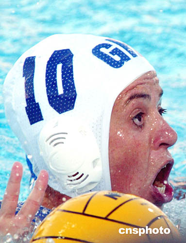 在當(dāng)?shù)貢r(shí)間8月22日舉行的女子水球賽中,希臘隊(duì)的10號(hào)選手Eftychia Karagianni表情豐富。