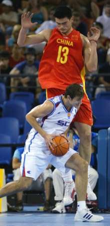 本戰(zhàn)之前,中國(guó)隊(duì)與塞黑皆一勝三負(fù),本場(chǎng)比賽的勝負(fù)將決定最終誰(shuí)能闖入八強(qiáng)。盡管比賽一開(kāi)始中國(guó)隊(duì)仍然屢屢出現(xiàn)失誤,但投手李楠的復(fù)活、姚明良好的手感及全隊(duì)破釜沉舟的攻防氣勢(shì),使得塞黑隊(duì)亂了陣腳。在比賽中,塞黑隊(duì)不僅失去了投籃的精準(zhǔn),而且內(nèi)線進(jìn)攻屢屢受挫,加之防守速度的遲緩,最終令中國(guó)隊(duì)在終局后來(lái)居上,一分反超。