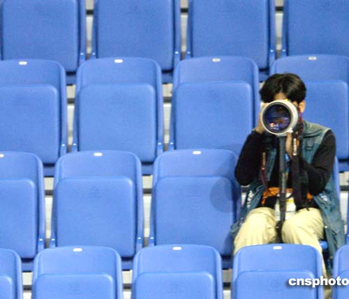 圖為當(dāng)?shù)貢r(shí)間23日進(jìn)行的男子94公斤級(jí)舉重賽場(chǎng)上的攝影者。