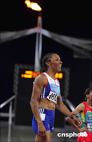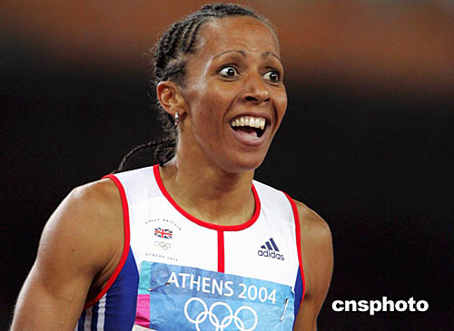 圖為英國女將霍爾姆斯(Kelly Holmes)在得知自己奪得女子800米比賽冠軍后異常驚喜。