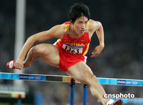 當(dāng)?shù)貢r間八月二十五日晚,在雅典奧運會田徑男子一百一十米跨欄第二輪比賽中,中國選手劉翔順利地以十三秒二六的成績獲得小組第一,進入半決賽。中新社記者:毛建軍
