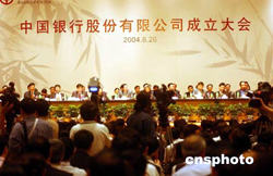經(jīng)中國政府批準(zhǔn),中國銀行整體改建為中國銀行股份有限公司,并于二零零四年八月二十六日在北京成立,自成立之日起,將完整承繼中國銀行的資產(chǎn)、負(fù)債和所有業(yè)務(wù)。中新社記者:武仲林