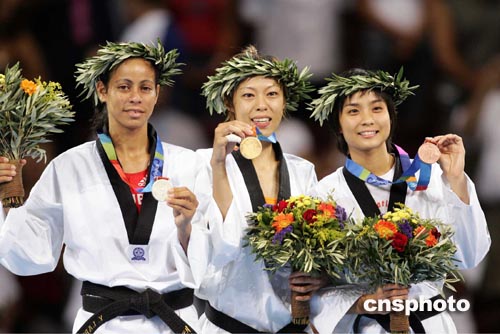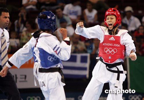 中新社雅典八月二十六日電 二十六歲的中國(guó)臺(tái)北選手陳詩(shī)欣今天在奧運(yùn)會(huì)女子跆拳道四十九公斤級(jí)決賽中力克古巴名將萊布拉達(dá),為中國(guó)臺(tái)北奪得奧運(yùn)會(huì)歷史上的首枚金牌。