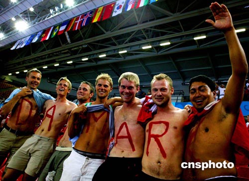 當?shù)貢r間8月26日晚,丹麥女子手球隊以32比28戰(zhàn)勝中國隊進入四強,丹麥球迷以獨特的方式慶祝這一勝利。中新社記者:王瑤