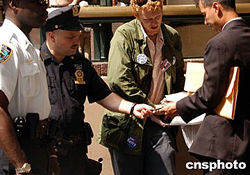 圖:紐約警察盤查反布什人士