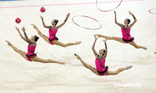 藝術(shù)體操并非中國強(qiáng)項(xiàng),中國隊(duì)此前最好成績是去年世界錦標(biāo)賽集體全能第七名。除了團(tuán)體項(xiàng)目外,中國此次還派出選手鐘玲參加了個人全能賽,不過,因技術(shù)與世界強(qiáng)手存在一定差距,鐘玲最終未能進(jìn)入決賽。
