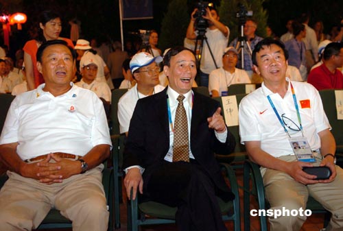 第二十九屆奧運會組委會執(zhí)行主席、中國國家體育總局局長袁偉民,第二十九屆奧運會組委會執(zhí)行主席、北京市市長王岐山,國家旅游局局長何光(左日右韋),第二十九屆奧運會組委會副主席蔣效愚,中國駐希臘大使唐振琪,VISA國際組織首席執(zhí)行官克里斯托弗,希臘旅游部部長迪米特里斯,雅典市市長巴科雅姆尼,國際奧委會及雅典奧組委的有關官員出席了儀式。