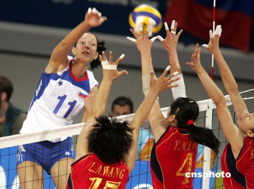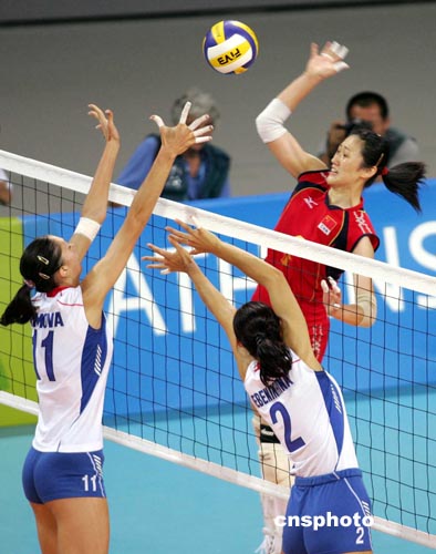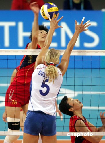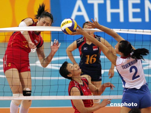 當(dāng)?shù)貢r(shí)間八月二十八晚,中國(guó)女排在雅典奧運(yùn)會(huì)女排決賽中先失兩局的情況下,連扳三局,最終以三比二戰(zhàn)勝俄羅斯隊(duì)而獲得冠軍。中新社記者:毛建軍