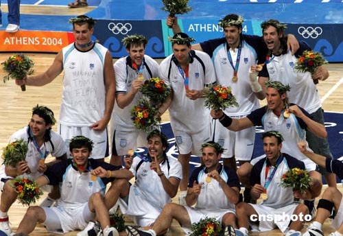 當(dāng)?shù)貢r(shí)間8月28日晚,在雅典奧運(yùn)會(huì)男籃決賽中,技高一籌、經(jīng)驗(yàn)老道的阿根廷隊(duì)在NBA巨星吉諾比利的率領(lǐng)下,以84比69戰(zhàn)勝意大利隊(duì),奪得分量頗重的男籃金牌。作者:任晨鳴