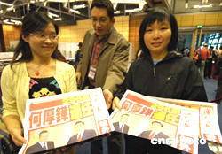 澳門特別行政區(qū)第二任行政長官選舉,二十九日在澳門舉行,何厚鏵以二百九十六票高票當(dāng)選,澳門主流媒體實時出號外慶祝。作者:梁永強(qiáng)