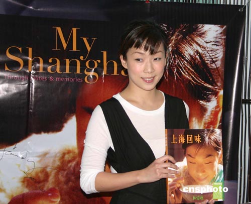 8月29日下午,走出婚變陰影的著名歌星林憶蓮在臺(tái)北101大樓一書(shū)店簽名售書(shū)《上;匚丁,和大家一起分享小時(shí)候和媽媽、外婆的煮飯經(jīng)驗(yàn)。圖為林憶蓮展示新書(shū)《上;匚丁。中新社記者:黃少華