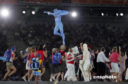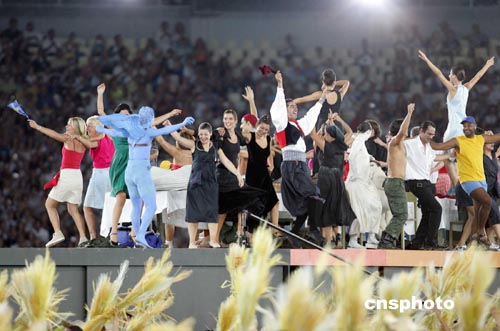 當地時間八月二十九日,第二十八屆奧林匹克運動會在雅典圓滿結束。圖為閉幕式上的文藝表演。中新社記者:毛建軍