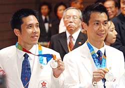 為歡迎香港奧運(yùn)代表,香港政府特別于8月31日在尖沙嘴文化中心舉行正式的歡迎儀式,F(xiàn)場(chǎng)一早有數(shù)百名市民等候,熱烈歡迎奧運(yùn)代表及榮獲奧運(yùn)乒乓球男子雙打銀牌得主高禮澤、李靜。作者:洪少葵