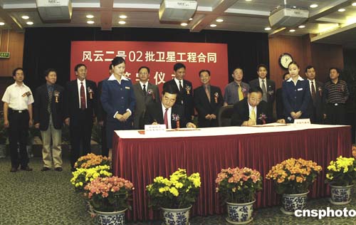 中國國防科工委三十一日在北京組織舉行“‘風(fēng)云二號’0二批衛(wèi)星工程合同簽字儀式”,中國氣象局和中國航天科技集團(tuán)公司、中國衛(wèi)星發(fā)射測控系統(tǒng)部簽署了《“風(fēng)云二號”0二批衛(wèi)星、運(yùn)載火箭研制生產(chǎn)合同》及《“風(fēng)云二號”0二批衛(wèi)星發(fā)射測控合同》。根據(jù)合同,在二0一0年之前,中國將用三發(fā)“長征三號甲”運(yùn)載火箭發(fā)射“風(fēng)云二號”0二批的三顆氣象衛(wèi)星。