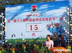 九月一日,在寧夏首府銀川中山公園,“第十三屆中國金雞百花獎(jiǎng)電影節(jié)”倒計(jì)時(shí)顯示牌異常醒目。“電影節(jié)九月十六日將于銀川開幕,屆時(shí)張柏芝、林志炫、閻維文、韓紅、劉歡、騰格爾等眾多的影視明星、當(dāng)紅歌星及影迷云集銀川。作者:劉呈軍