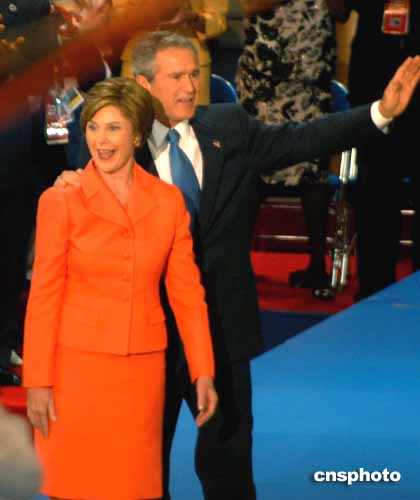 另據(jù)美國《基督教科學箴言報》報道,演講結(jié)束后,布什及夫人勞拉還一起在臺上向與會的支持者們揮手致意,非常注意淡化布什在選民心目中的強硬的、保守的印象。