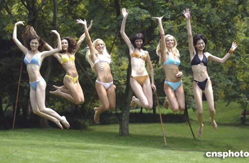 “時尚杭州之旅”2004年新絲路世界模特大賽,四十七名國內(nèi)外參賽佳麗9月2日在浙江省杭州西湖邊上演了一場泳裝秀,為西湖又添美景。杭州努力成為中國休閑之都。中新社記者:盛佳鵬