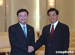 中新社北京九月三日電(記者齊彬)中共中央總書記、國(guó)家主席胡錦濤今天下午在人民大會(huì)堂會(huì)見了前來參加第三屆亞洲政黨國(guó)際會(huì)議的泰國(guó)泰愛泰黨主席、總理他信。