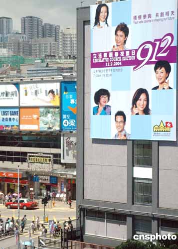 香港立法會(huì)選舉日即將舉行,各政黨造勢(shì)宣傳如火如荼,街頭政府的選舉廣告呼吁選民踴躍投票。作者:洪少葵