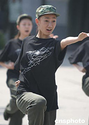 九月六日,為紀(jì)念現(xiàn)代芭蕾舞劇《紅色娘子軍》演出四十周年,中芭舞團(tuán)特組織八十名演職員參加“重走娘子軍之路”的學(xué)軍活動(dòng)。青春靚麗的孟寧寧將在十月八日出演新版舞劇《娘子軍》的主角吳瓊花。中新社記者:廖文靜