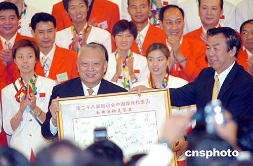 代表團(tuán)團(tuán)長(zhǎng)、國(guó)家體育總局局長(zhǎng)袁偉民說(shuō),今天剛剛抵達(dá)香港,就受到香港同胞親人般的歡迎。他對(duì)長(zhǎng)期支持祖國(guó)體育事業(yè)發(fā)展,關(guān)心祖國(guó)體育健兒的香港同胞,表示衷心問候和誠(chéng)摯謝意。他說(shuō),中國(guó)選手在雅典奧運(yùn)會(huì)上取得的優(yōu)異成績(jī),得益于祖國(guó)綜合國(guó)力的強(qiáng)大,得益于祖國(guó)在世界上影響力的擴(kuò)大,得益于內(nèi)地與香港長(zhǎng)期以來(lái)在體育事業(yè)上的交流與合作,得益于廣大香港同胞對(duì)祖國(guó)內(nèi)地體育事業(yè)的關(guān)心和支持。內(nèi)地體育事業(yè)取得的成果,包含了香港同胞的貢獻(xiàn)。這次訪港,也是專門來(lái)感謝和回報(bào)香港同胞長(zhǎng)期以來(lái)對(duì)內(nèi)地體育事業(yè)的關(guān)心和支持,與香港同胞共同分享這巨大的榮譽(yù)和喜悅。他希望兩地有更多的交流和合作。