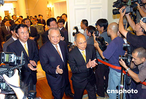 全國政協(xié)副主席霍英東、香港特首董建華,9月6日在禮賓府歡迎國家體育總局局長袁偉民及為中國奪得32面金牌的中國運動員訪港。作者:洪少葵