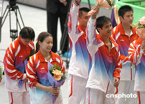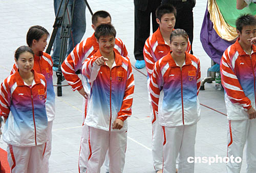 金牌跳水運(yùn)動員郭晶晶、田亮等入場
