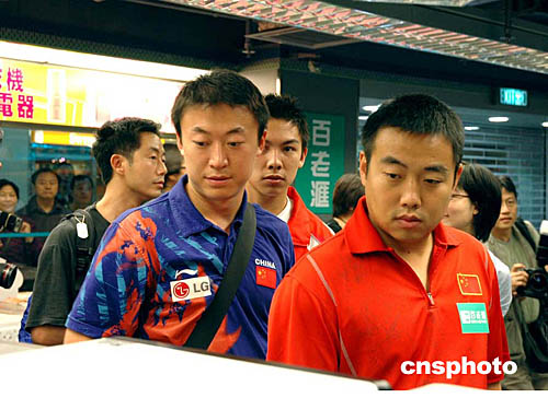 國家奧運(yùn)金牌選手在香港展開訪港行程,9月8日,部分金牌選手到尖沙咀海港城海洋中心選購總值十多萬元電器產(chǎn)品。劉國良教練、陳杞、馬琳等選購產(chǎn)品。作者:洪少葵