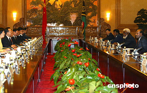 中國國務(wù)院總理溫家寶與瓦努阿圖總理沃霍爾九日在北京舉行會談。