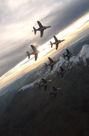 法國空軍的“法蘭西巡邏兵”飛行表演隊(duì)正式成立于1964年2月。飛行表演隊(duì)的飛機(jī)涂著同法國國旗一樣的紅、白、藍(lán)三種顏色,機(jī)群在空中做飛行表演時(shí)也常常把著三種顏色的煙跡留在空中。它象征著“自由”(紅色)、“民主”(白色)、“博愛”(藍(lán)色),體現(xiàn)了法國人民勇敢、浪漫的傳統(tǒng)和對未來美好的愿望。圖為精彩的飛行表演(來源:艦船知識網(wǎng)絡(luò)版)