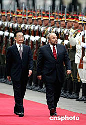 中國國務(wù)院總理溫家寶九月十三日下午在北京人民大會堂東門外廣場主持儀式,歡迎來訪的阿爾巴尼亞總理納諾。這是中阿總理三十八年來的首次會晤。中新社記者:毛建軍