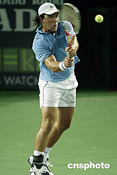 九月十三日,在北京網(wǎng)球中心中央球場(chǎng)舉行的中國(guó)網(wǎng)球公開賽男子單打比賽中,ATP巡回賽排名第二十五位的德國(guó)網(wǎng)球名將舒特勒,以二比零戰(zhàn)勝澳大利亞選手巴卡尼羅,順利晉級(jí)下一輪比賽。圖為巴卡尼羅在比賽中。中新社記者:盛佳鵬