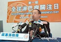第一屆全球淋巴瘤關(guān)注日新聞發(fā)布會(huì)9月14日在香港大學(xué)醫(yī)學(xué)院大樓舉行,香港大學(xué)醫(yī)學(xué)院血液及腫瘤科主管梁憲孫教授表示,本港在91至01年十年期間,淋巴瘤個(gè)案增加超過兩成,達(dá)到640宗。港大醫(yī)學(xué)院及血癌基金,將15日訂為全球淋巴瘤關(guān)注日。作者:鄧慶樂