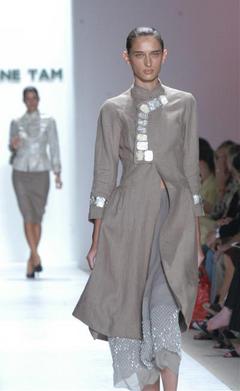 中新網(wǎng)9月15日電 據(jù)世界日?qǐng)?bào)報(bào)道,曼哈頓13日舉行2005年春裝新展,知名華裔服裝設(shè)計(jì)師譚燕玉,采用中國云南“苗族”服飾因素,將鮮度極高的色彩與中性色調(diào)相搭襯,配上大膽的亮銀色,激起一股視覺震撼。