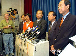 香港民建聯(lián)候任立法會(huì)議員譚耀宗、蔡素玉、陳鑒林、張學(xué)明等,9月15日應(yīng)邀與行政長(zhǎng)官董建華會(huì)晤。作者:洪少葵