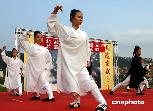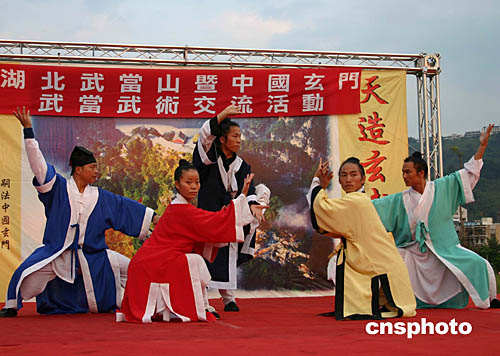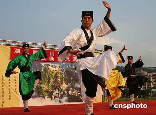 中新社臺北九月十八日電(記者黃少華陳立宇)應(yīng)臺灣“中華武當武術(shù)交流協(xié)會”邀請,湖北武當山武術(shù)文化交流訪問團一行二十四人于九月十六日至二十九日在臺灣巡回表演。今昨兩天,訪問團分別在臺北市大安森林公園、天母公園、臺北縣林口等地表演,場場吸引了數(shù)百位民眾到場觀摩。