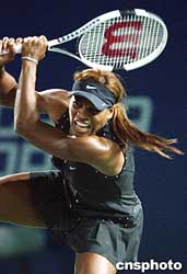 九月二十二日在北京舉行的首屆中國網(wǎng)球公開賽WTA巡回賽女單比賽中,美國名將小威廉姆斯苦戰(zhàn)三盤戰(zhàn)勝俄羅斯選手薩芬娜,成功晉級(jí)。作者:武仲林