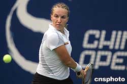 新科美國網(wǎng)球公開賽冠軍、俄羅斯選手庫茲涅佐娃,九月二十四日在中國網(wǎng)球公開賽中以2比0擊敗阿根廷選手杜爾科進(jìn)入前四名,將與同是俄羅斯的美女莎拉波娃爭奪決賽權(quán)。中新社記者:任晨鳴