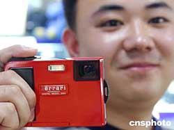 當(dāng)“法拉利F1”賽車即將在上;鸨菆(chǎng)時(shí),一款大紅色數(shù)碼相機(jī)也首次在北京中關(guān)村亮相,這是法拉利與奧林巴斯合作生產(chǎn)的民用數(shù)碼相機(jī),全球限量發(fā)行一萬臺(tái),其中北京配額500臺(tái)。作者:韓藝冰