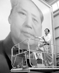 按照慣例,每年國慶節(jié)前,天安門城樓的毛澤東主席畫像都要更換,今年也不例外。自1977年就一直擔(dān)負(fù)畫主席像工作的畫家葛小光已在畫室半個多月,目前這幅長6米、寬5米的油畫已近尾聲。葛小光說,由于主席像掛在戶外,經(jīng)受風(fēng)吹日曬,所以這幅油畫的顏色和造型需要技巧,盡量減少季節(jié)、光照等因素的影響,掛上去后無論從哪個角度看都不會有太大變化。如果天氣沒有變化,27日晚將掛上城樓。