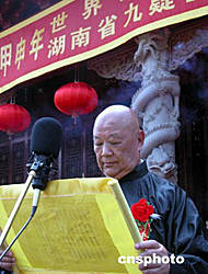 世界舜裔宗親聯(lián)誼會(huì)常務(wù)委員會(huì)主席、來(lái)自香港的陳守仁先生在恭讀祭文。
