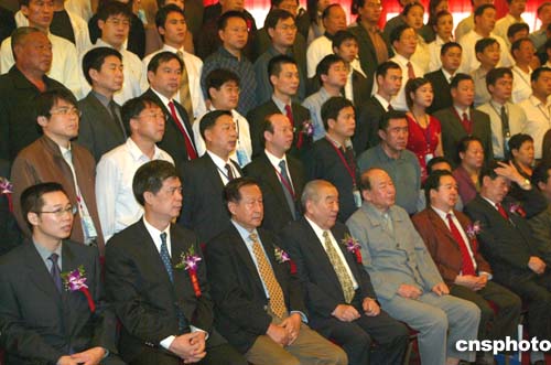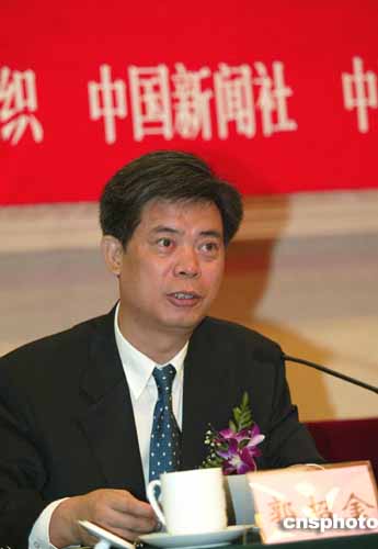 中國新聞社總編輯郭招金在會(huì)上發(fā)布2004年中國最具競爭力中小企業(yè)500強(qiáng)。中新社記者:滿會(huì)喬